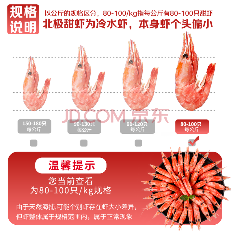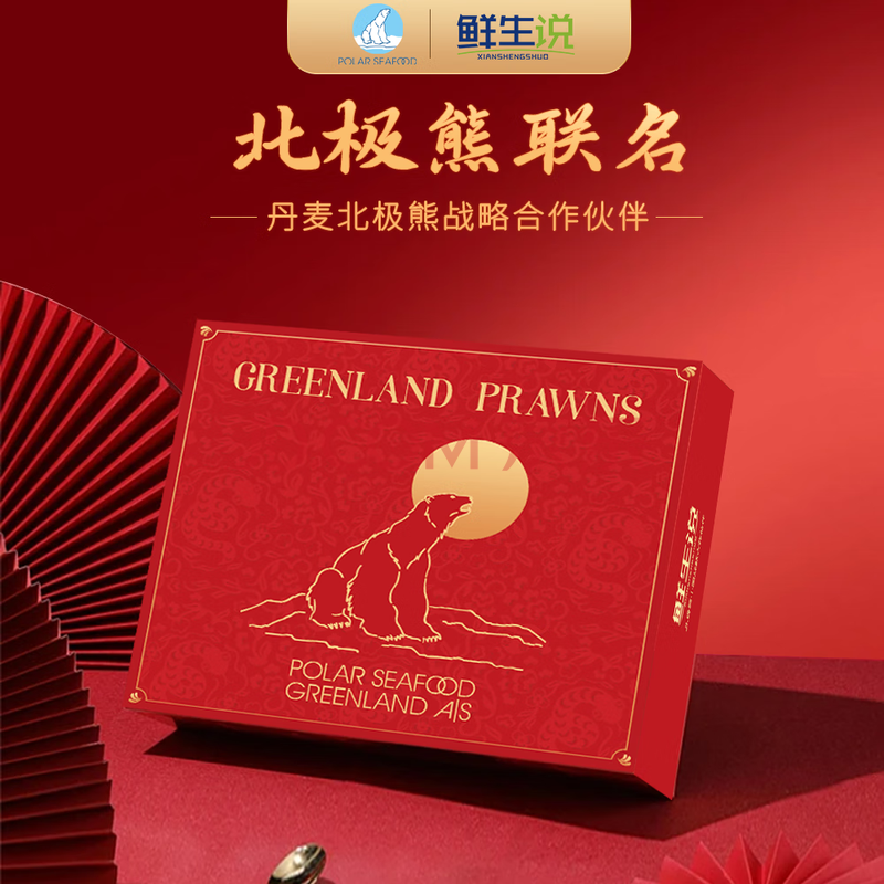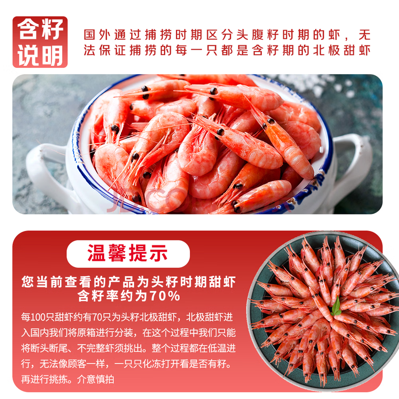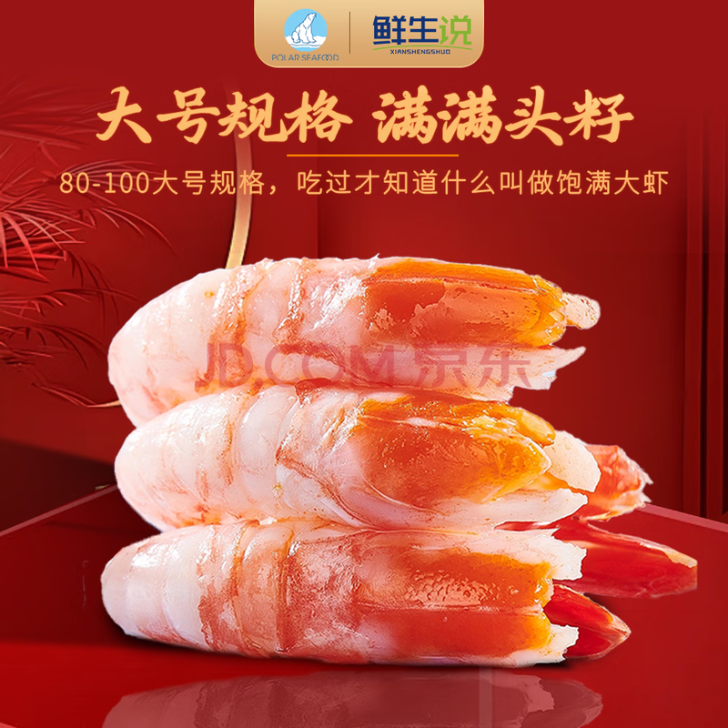 商品相册:鲜生说 大号头籽北极甜虾净重3斤 40-50只/斤 95-99%头籽率 即食冰虾第