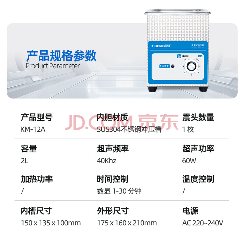 商品相册:科盟超声波清洗机工业小型五金精密件商用首饰手表清洗机KM-12A第