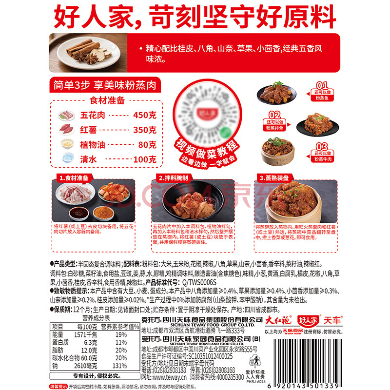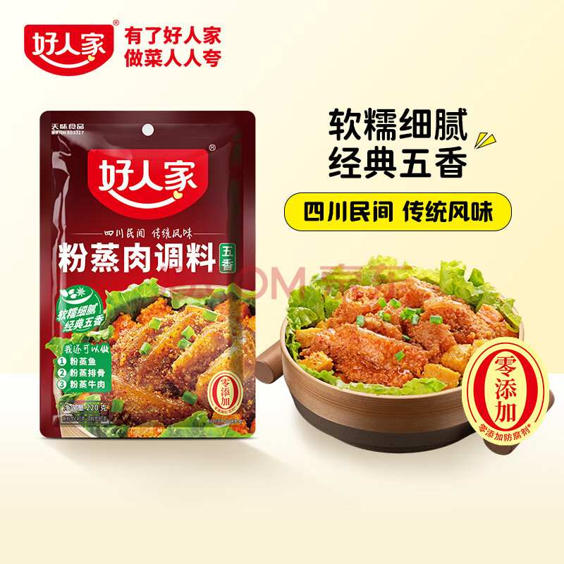 商品相册:好人家五香味粉蒸肉调料220g微辣【0添加防腐剂】蒸肉鱼排骨家庭调料第