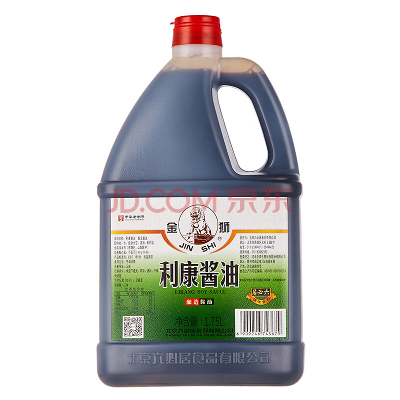 商品相册:六必居 金狮 利康酱油【酿造酱油】1.75L 中华老字号第