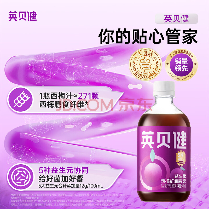 商品相册:英贝健益生元西梅汁排果蔬汁纤维饮料 大餐救星500ml1瓶装第