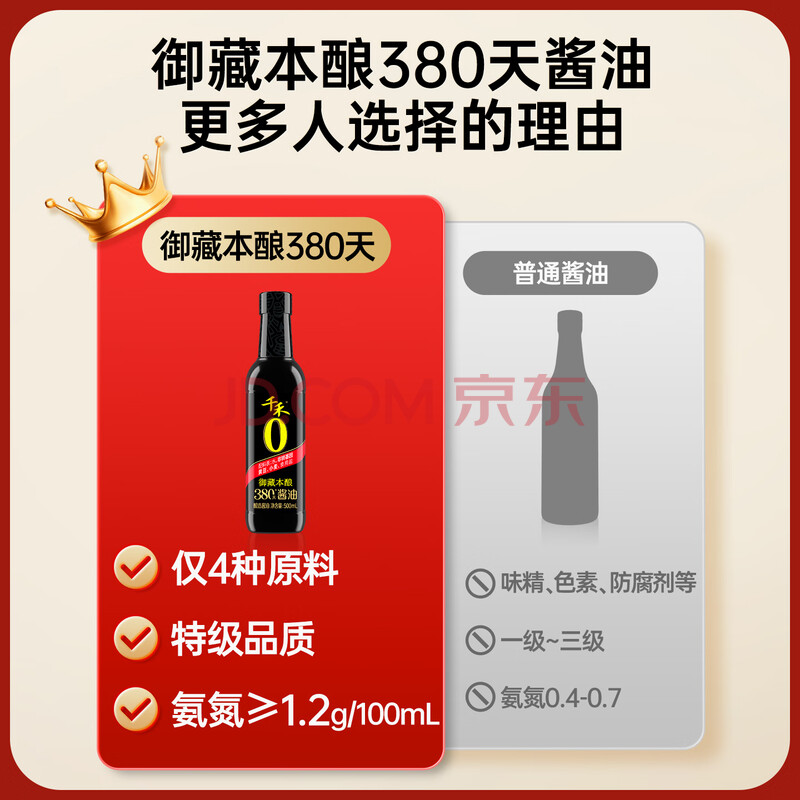 商品相册:千禾御藏本酿 380天酱油 500mL【0添加 特级生抽】炒菜提鲜调料调味品第