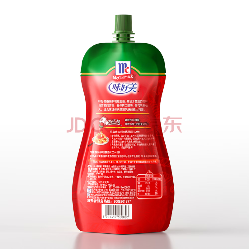 商品相册:味好美(McCormicK)意大利面酱挤挤装 230g 【选用番茄原料/意式经典】轻食小食酱料第