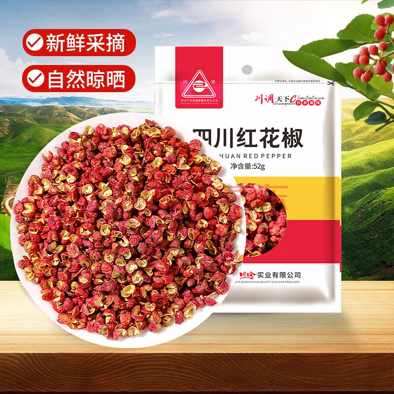 商品相册:川珍红花椒52g 四川一级大红袍麻椒火锅底料食材调料炖卤肉配料香辛料第