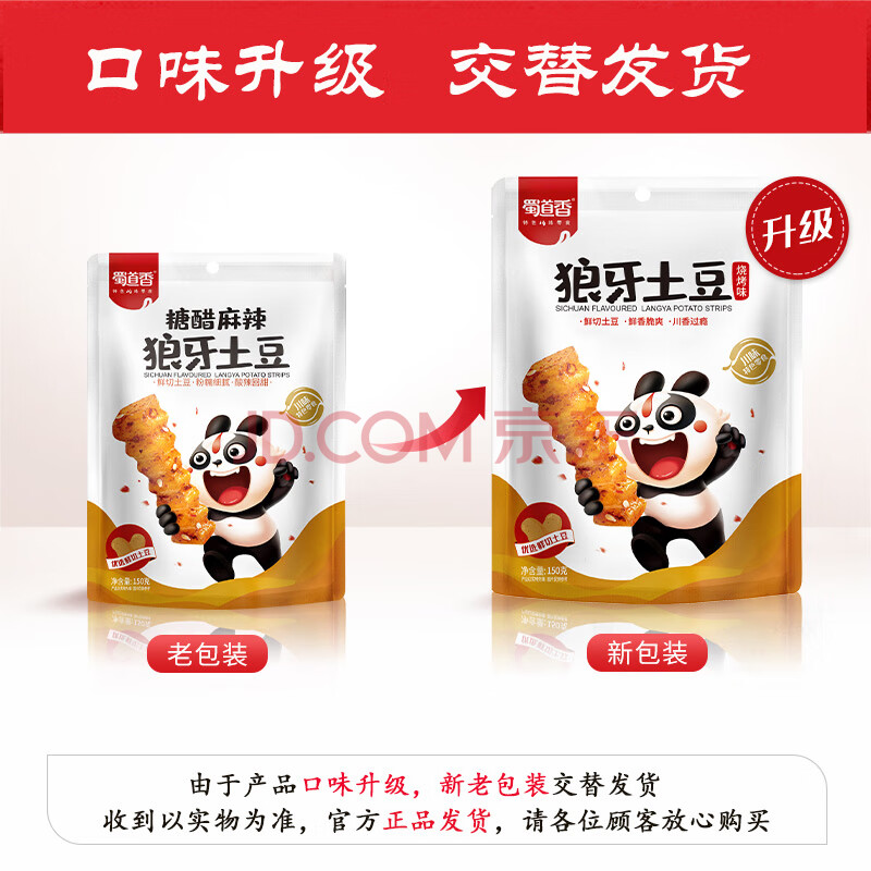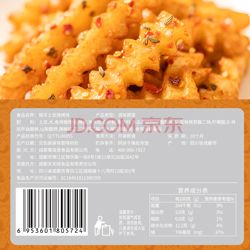商品相册:蜀道香狼牙土豆150g烧烤味 四川特产 麻香辣洋芋素食休闲零食品风味小吃第1张/共8