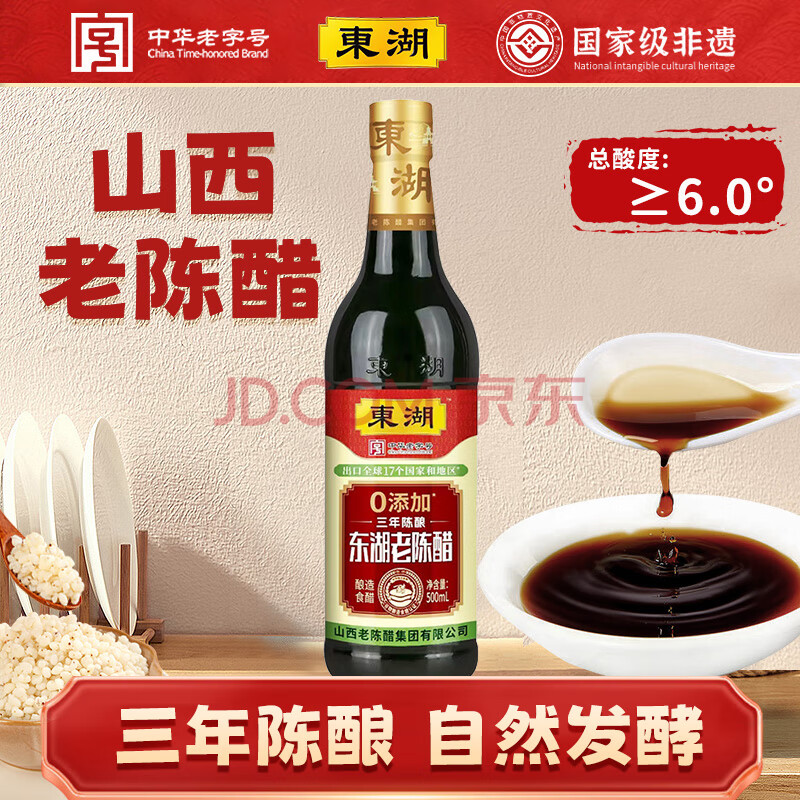 商品相册:东湖醋6度 三年陈酿东湖老陈醋500ml 凉拌醋饺子醋中华老字号第