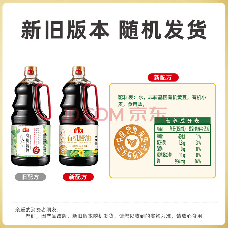 商品相册:海天 有机酱油1.28L【有机0添加特级酱油】有机系列 一瓶一码配料干净第