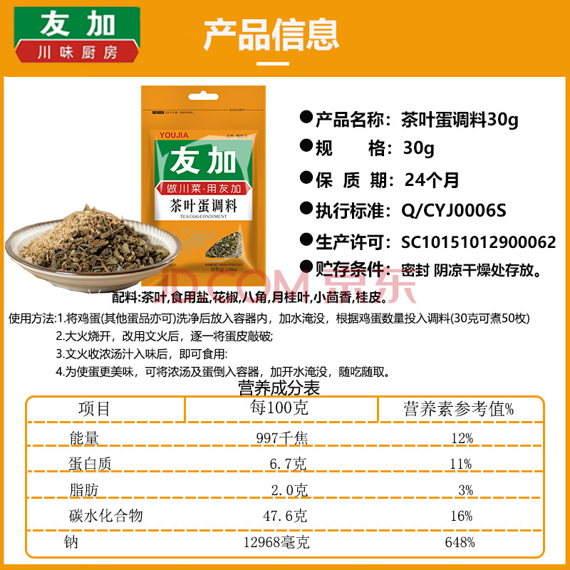 商品相册:友加食品 茶叶蛋调料30g 五香卤料包茶鸡蛋鹌鹑蛋 家庭卤肉炖肉卤味香辛料第