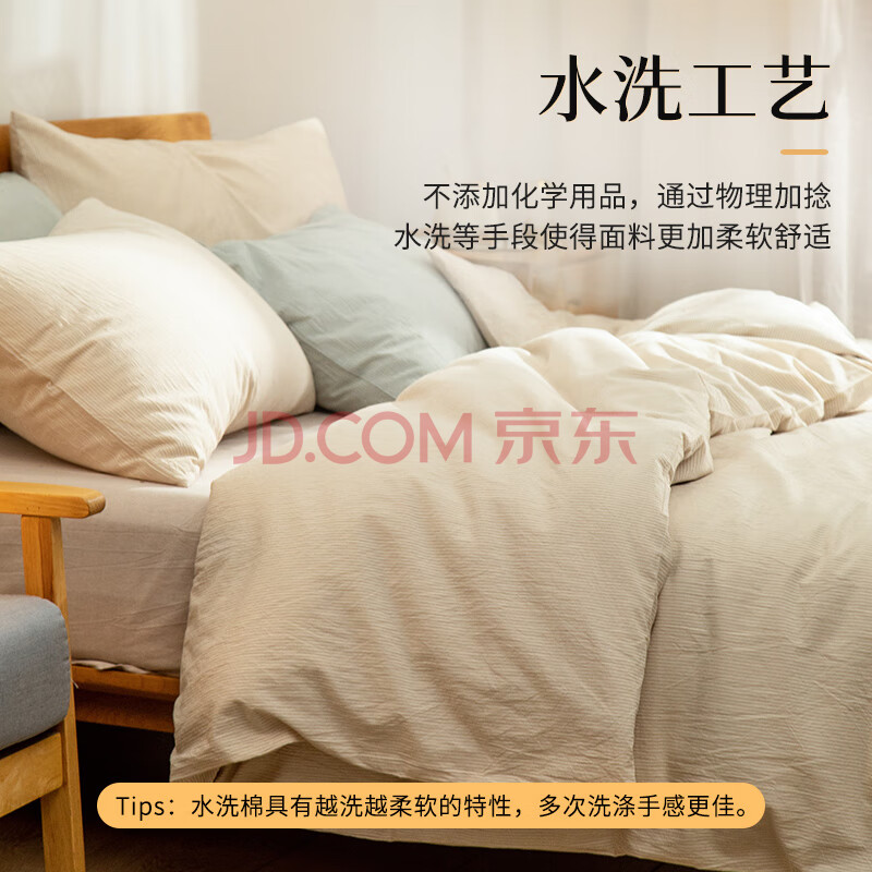 商品相册:素时代床上四件套纯棉 A类100%全棉日式水洗棉被套1.8/2.0米床 米密条第