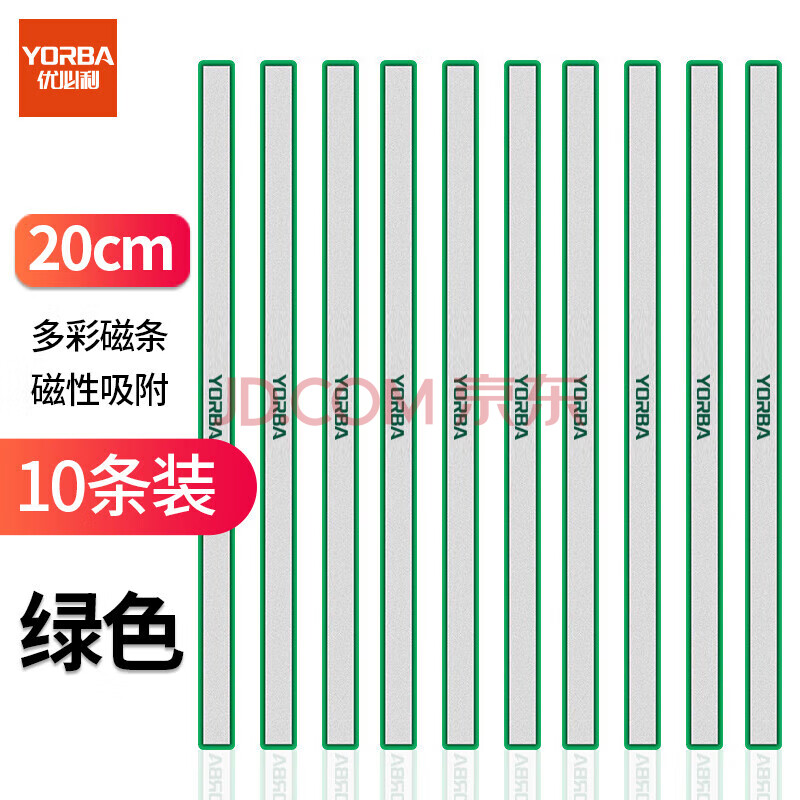 商品相册:优必利 硬胶磁条 白板磁铁吸铁石彩色压纸磁力条磁贴 20cm彩色磁条 10条 绿色第
