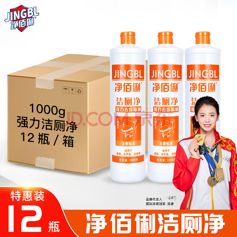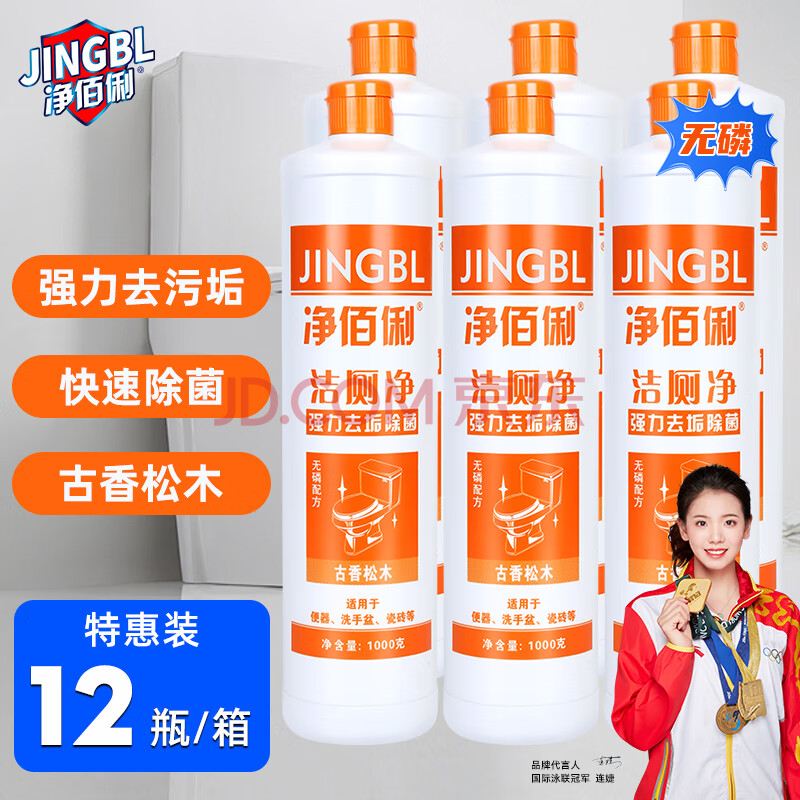 商品相册:净佰俐洁厕净1000g*12瓶整箱浓缩洁厕灵马桶清洁剂强力家用商用第1张/共8