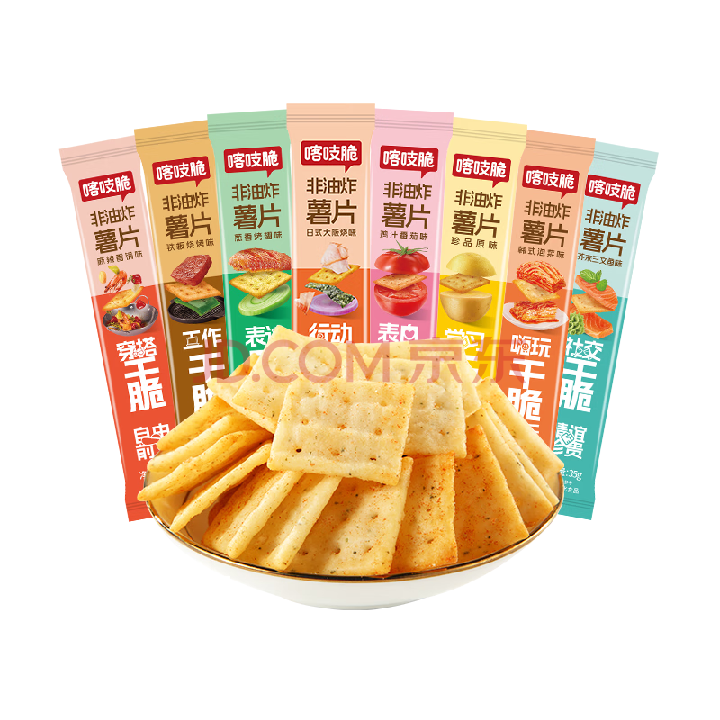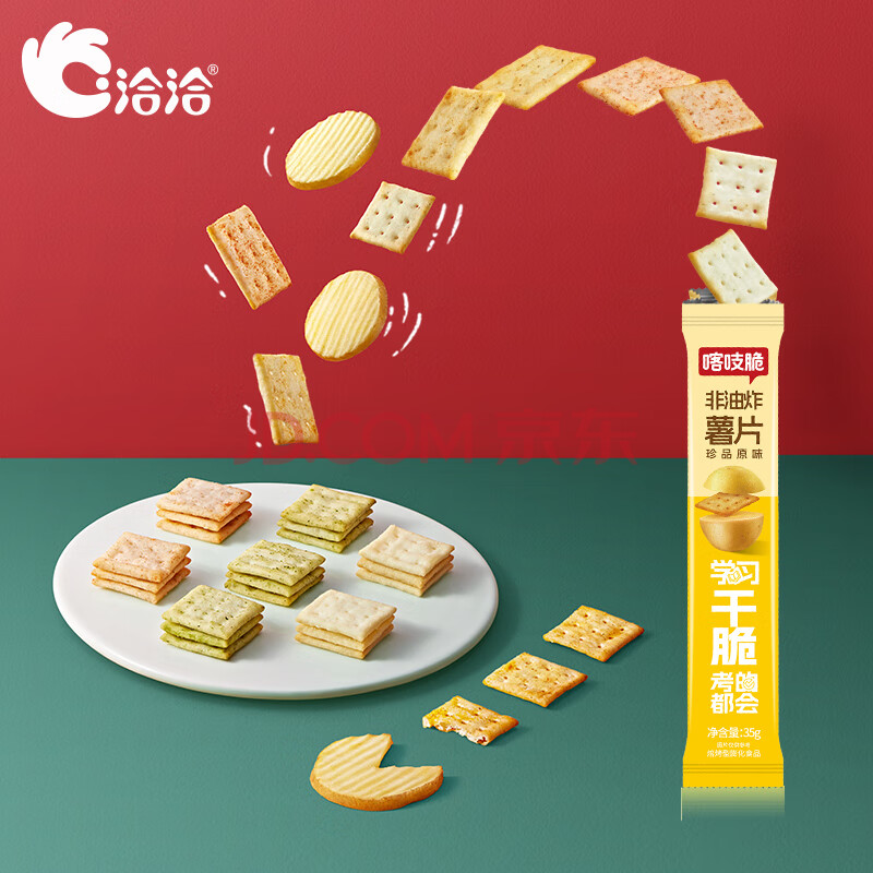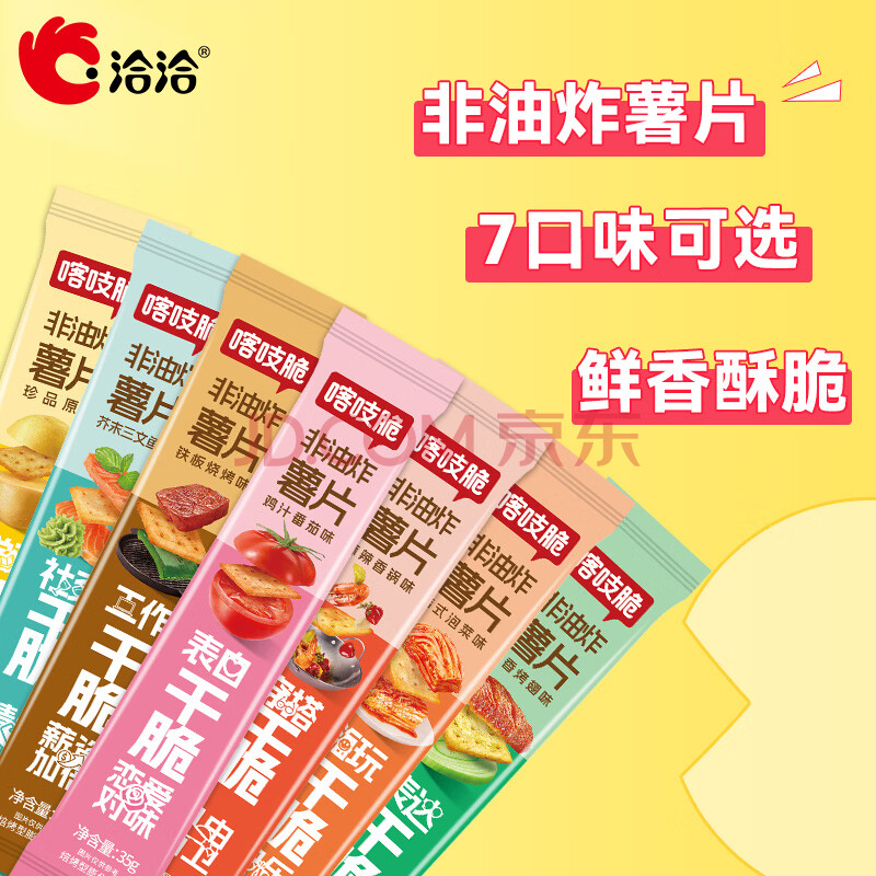 商品相册:洽洽喀吱脆薯片35g*8袋 咔吱脆非油炸休闲办公室零食小吃混合口味黑五第