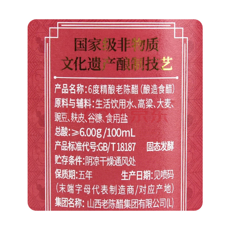 商品相册:东湖零添加6度老陈醋500ml【配方干净】 中华老字号第