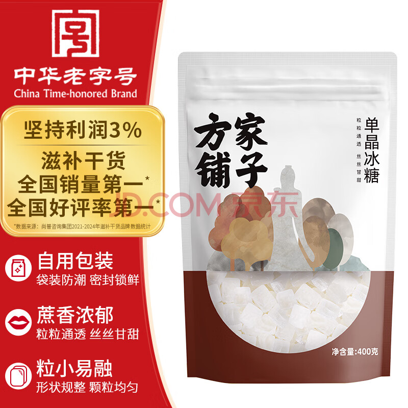 商品相册:方家铺子中华老字号 单晶冰糖400g 小块白冰糖 烘焙冲饮炖煮花茶甜品甜汤第