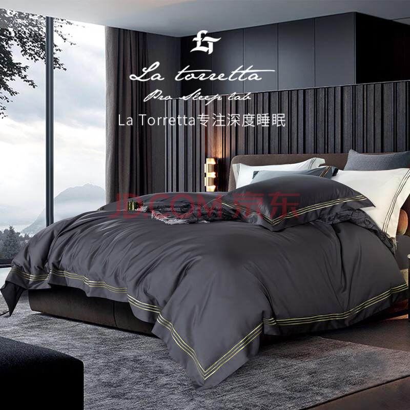 商品相册:La Torretta120支长绒棉四件套纯棉四季高档床上全棉被套床单黑灰1.8/2.0米床第