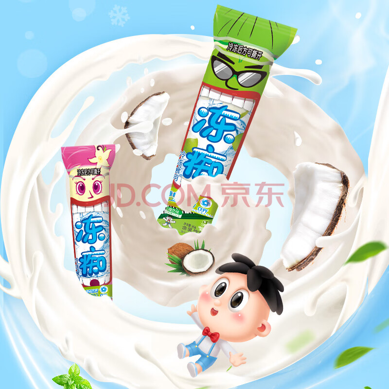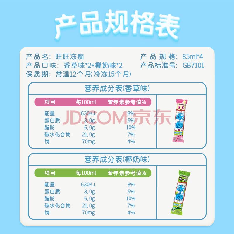 商品相册:旺旺冻痴 香草味85ml*2+椰奶味85ml*2 夏季休闲零食第