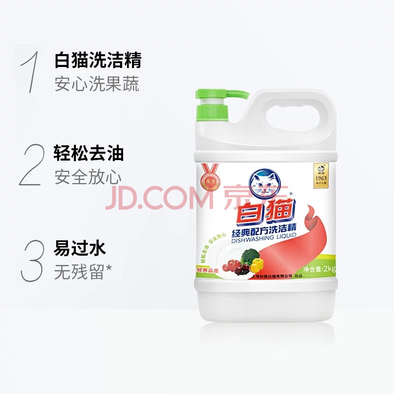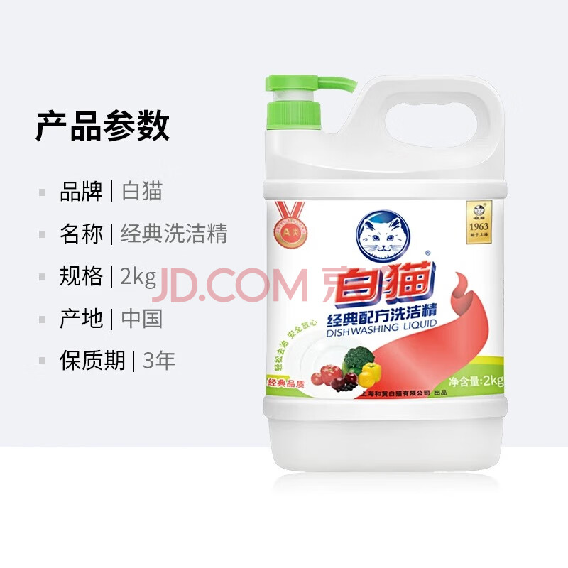 商品相册:白猫 经典配方洗洁精2kg 去油除腥清爽柠檬香型 洗洁精 洗涤灵 洗洁剂第