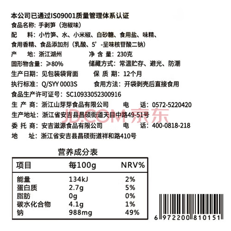 商品相册:淘滋源手剥笋老汤味230g即食手撕竹笋尖小吃办公室低卡休闲零食凉菜脆笋第
