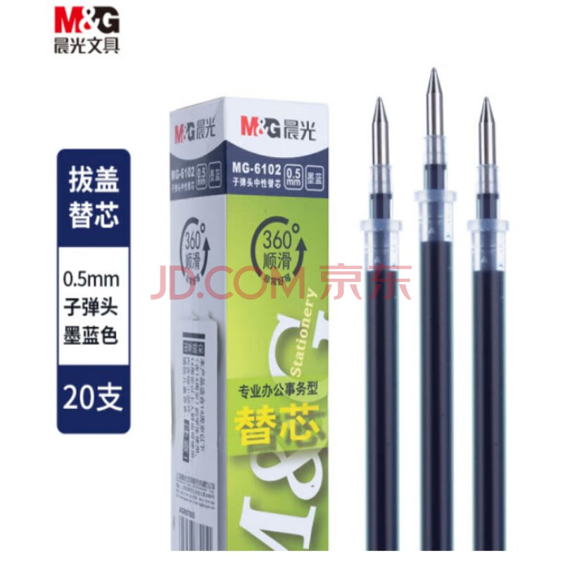 商品相册:晨光AGR67005 MG-6102中性笔替芯笔芯墨蓝0.5mm专业办公事务型替芯 20支/盒 1盒装第