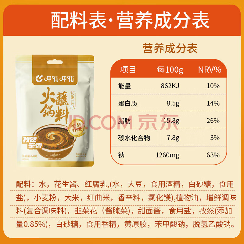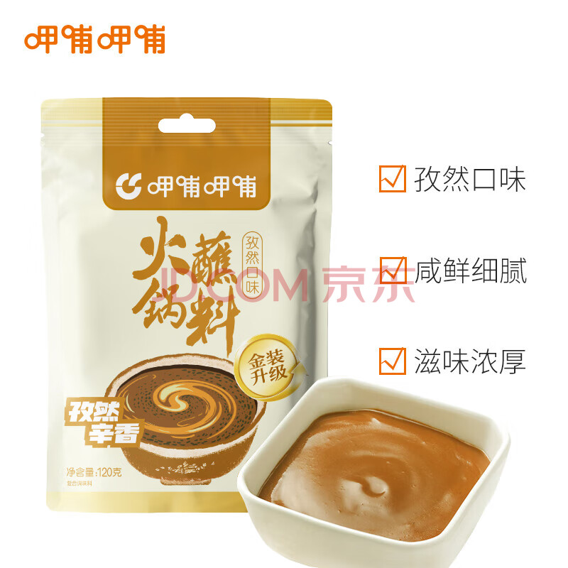 商品相册:呷哺呷哺 孜然味火锅蘸料花生酱 不辣麻酱拌面拌饭酱调料火锅食材120g*2袋第