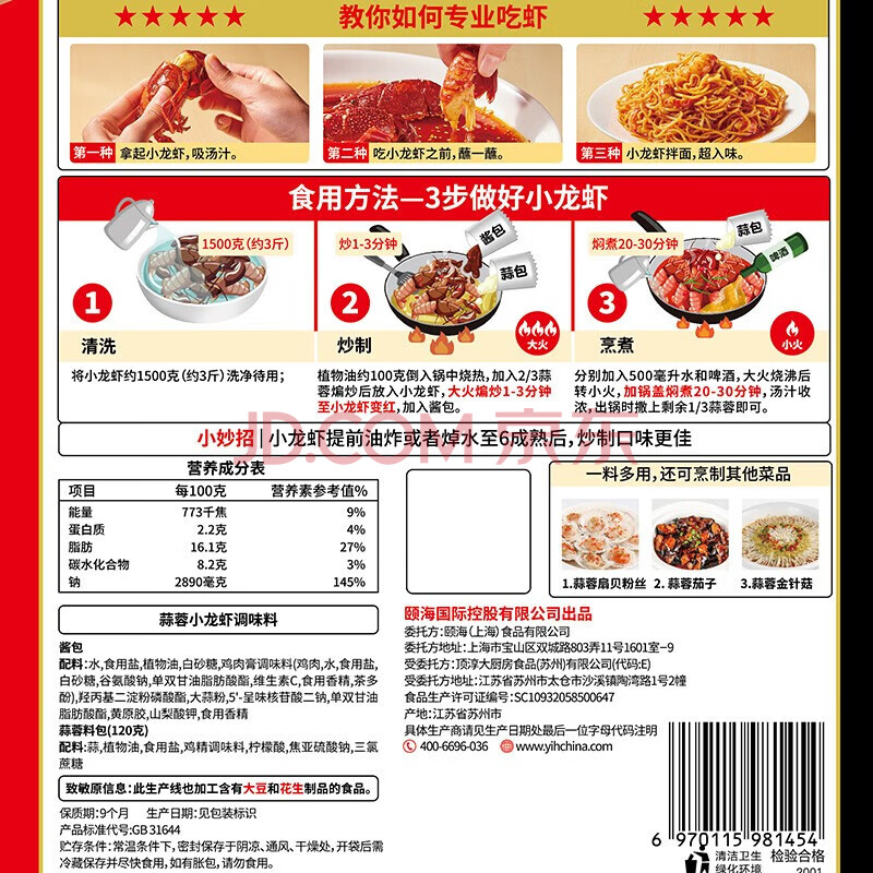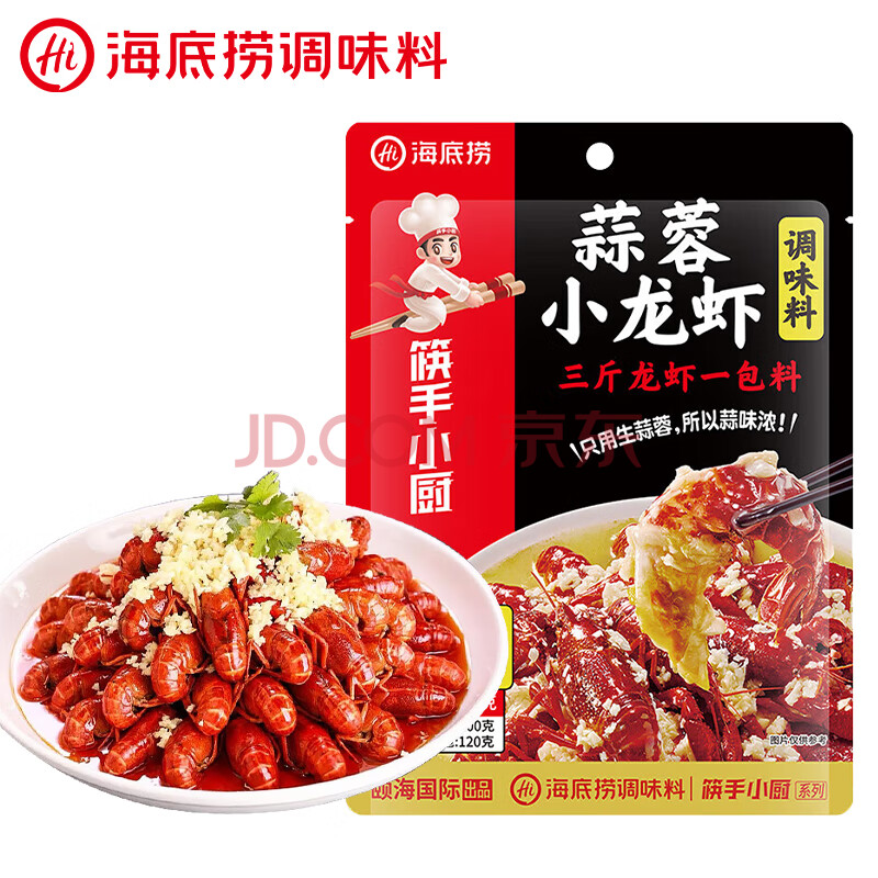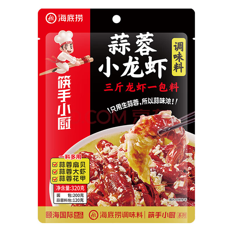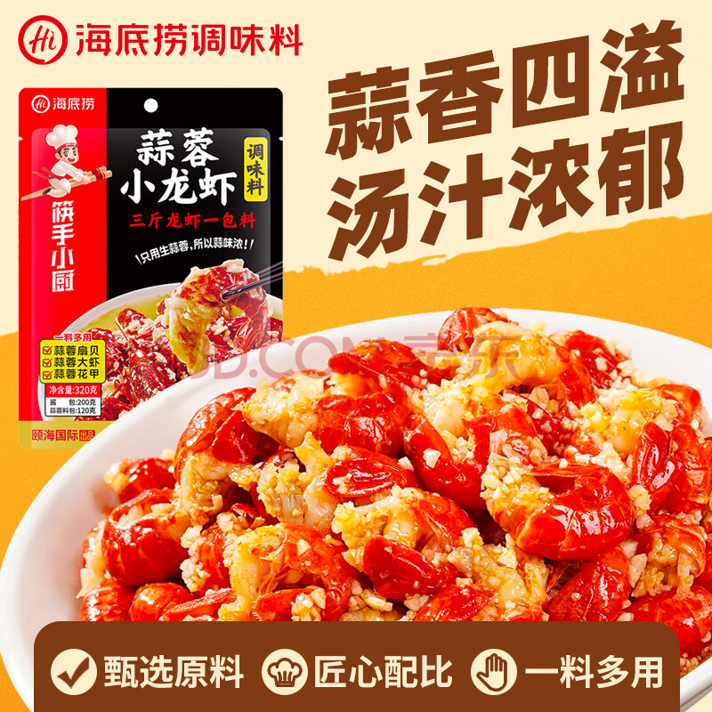商品相册:海底捞蒜蓉小龙虾调味料320g 1袋炒3斤龙虾 炒花甲料 生蚝烧烤解馋夜宵第