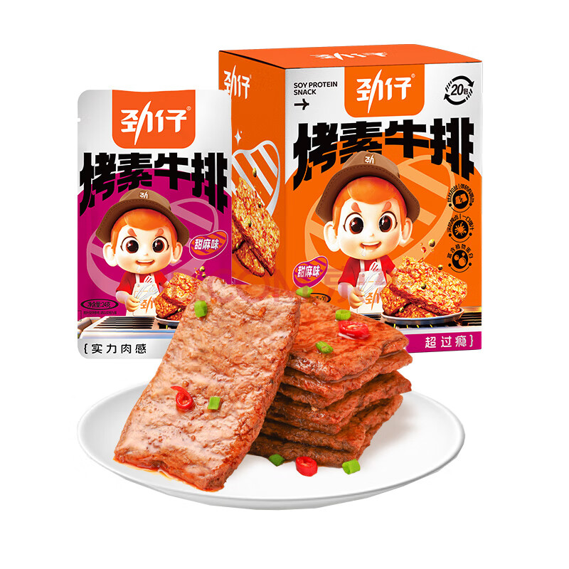 商品相册:劲仔烤素牛排 休闲豆干 甜麻味24g*20包第