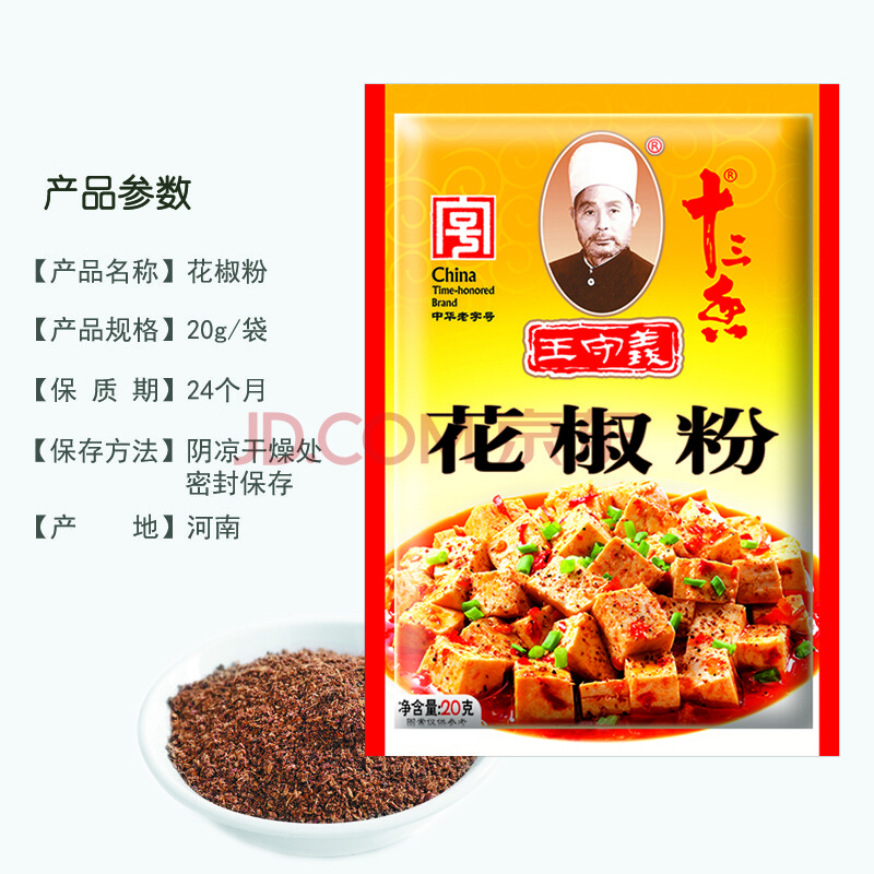 商品相册:王守义 花椒粉 20g袋装 纯花椒研磨 腌撒烹拌炒 多场景调味 中华老字号第