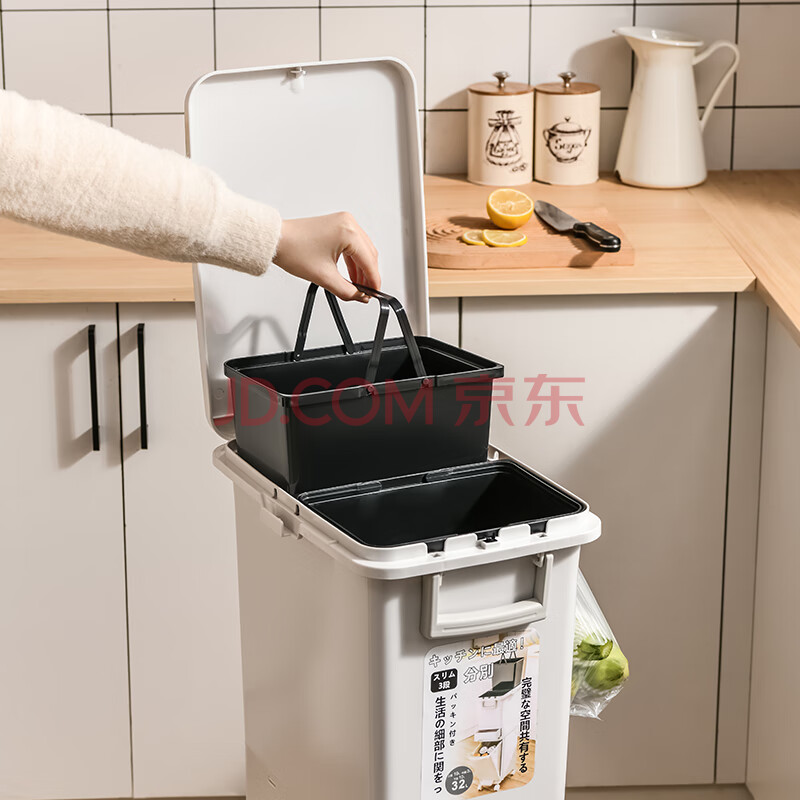商品相册:朴厨厨房垃圾桶29L分类垃圾桶家用带盖大号双层干湿分离厨余垃圾箱第