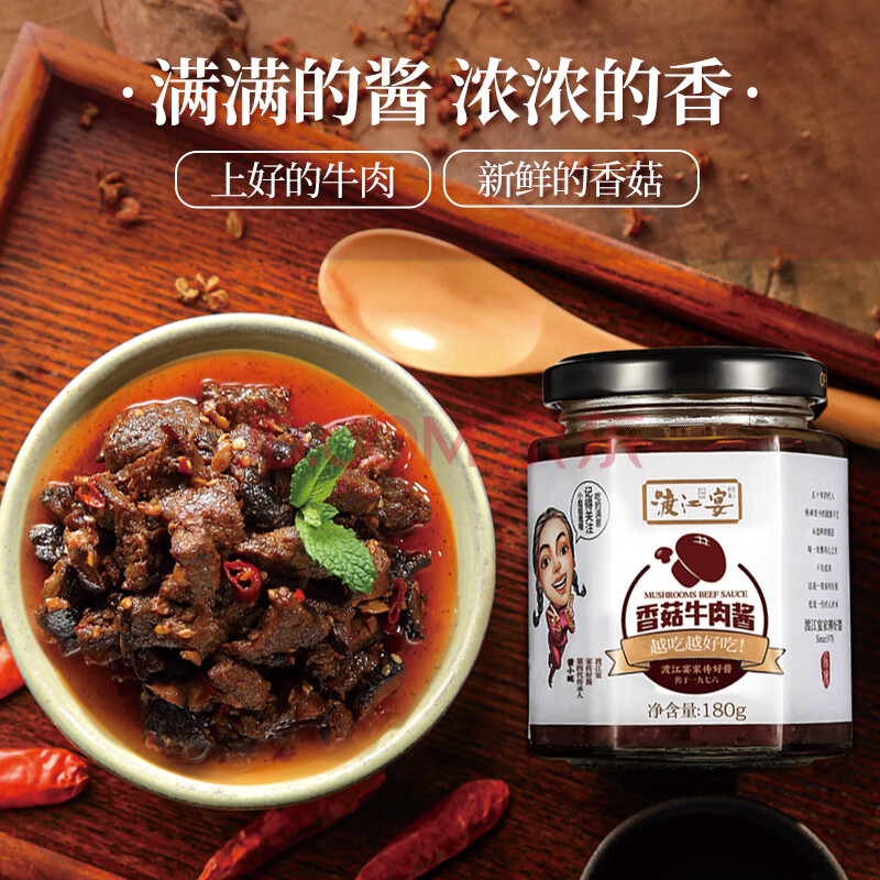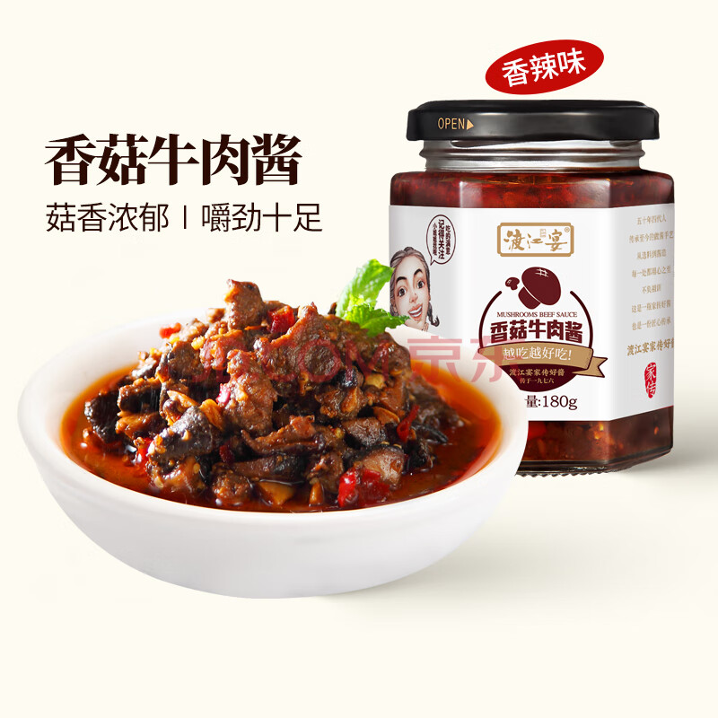 商品相册:渡江宴 香菇牛肉酱 暴下饭菜拌饭拌面夹馍酱 炒菜调味酱180g第
