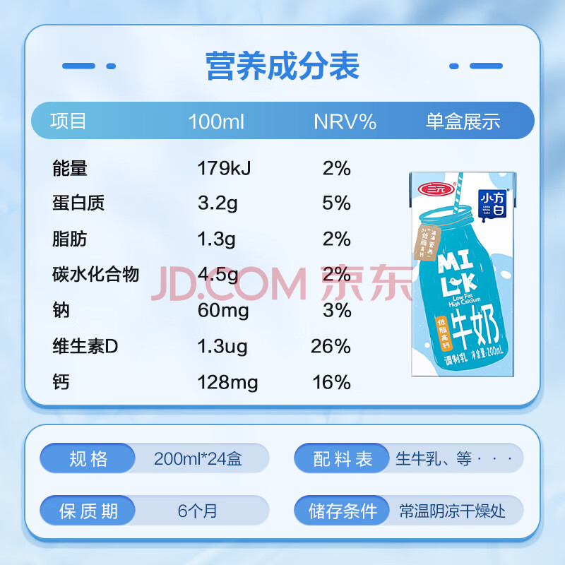 商品相册:三元(SAN YUAN)小方白低脂高钙牛奶整箱200ml*24盒 健身伴侣 第
