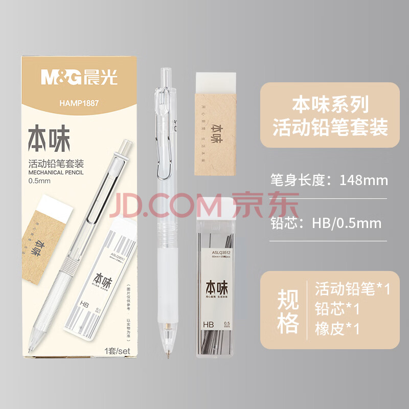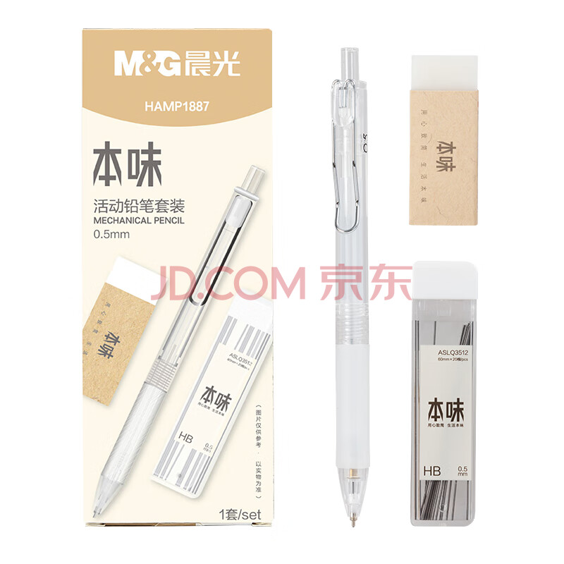 商品相册:晨光(M&G)(M&G)文具0.5mm活动铅笔套装 铅笔 HB铅芯 少屑橡皮 本味系列3件套 HAMP1887开学必备第