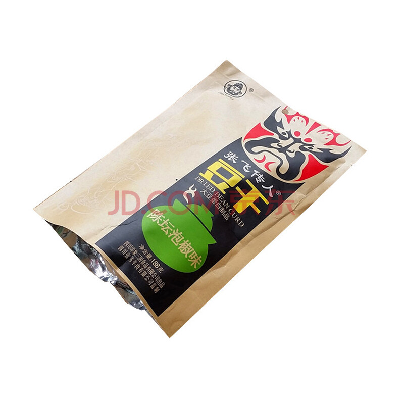 商品相册:张飞传人 手磨豆干陈坛泡椒味188g 四川旅游特产小吃 川味蜀香休闲零食第