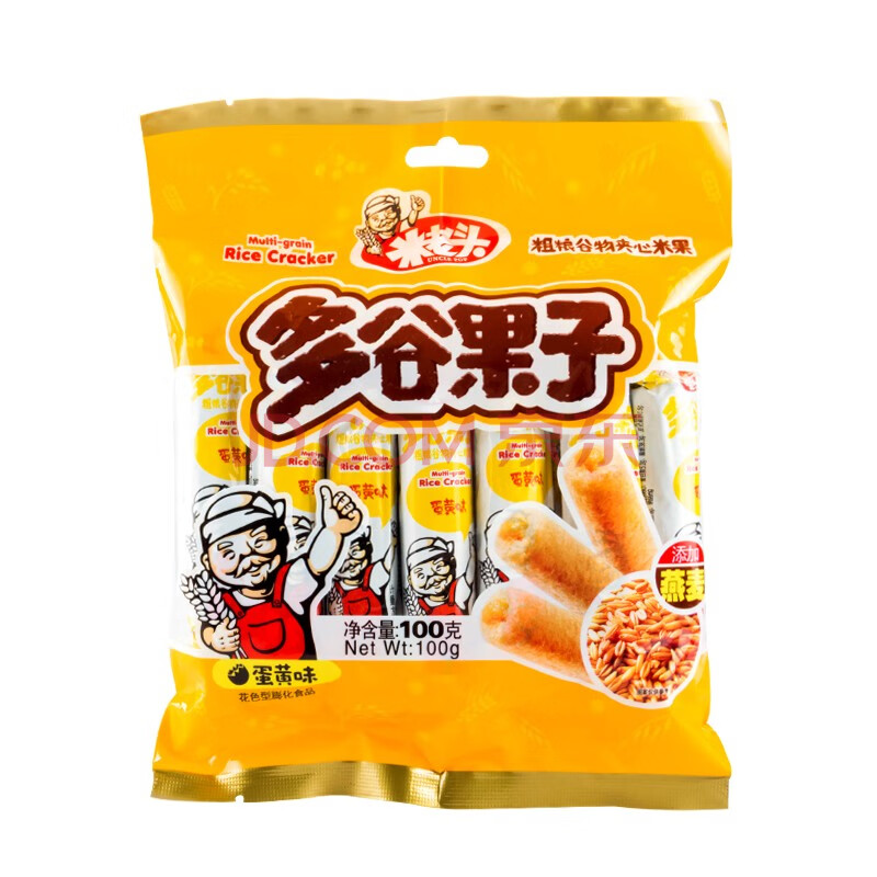 商品相册:米老头多谷果子蛋黄味粗粮米果卷充饥糙米卷能量棒100g第