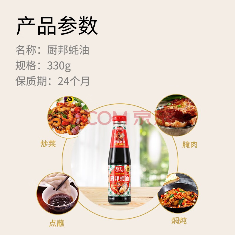 商品相册:厨邦蚝油 330g 【0脂肪】玻璃瓶装 炒蘸拌烤提鲜火锅点蘸调料 自营第