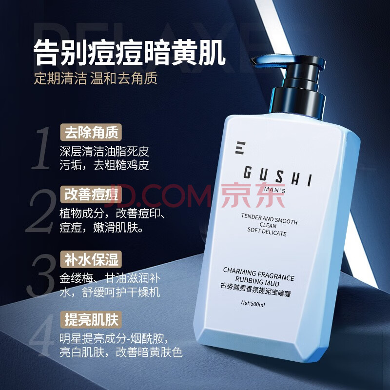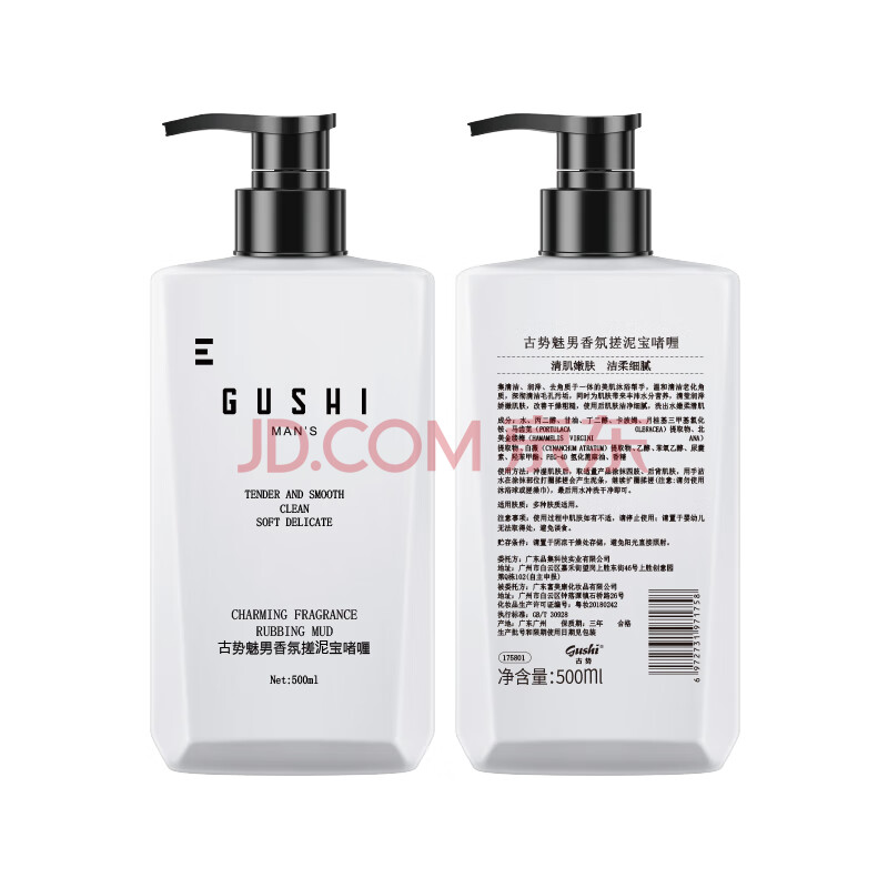 商品相册:古势男士搓泥宝沐浴露套装共1000ml(全身通用去泥去角质搓澡泥磨砂膏)第