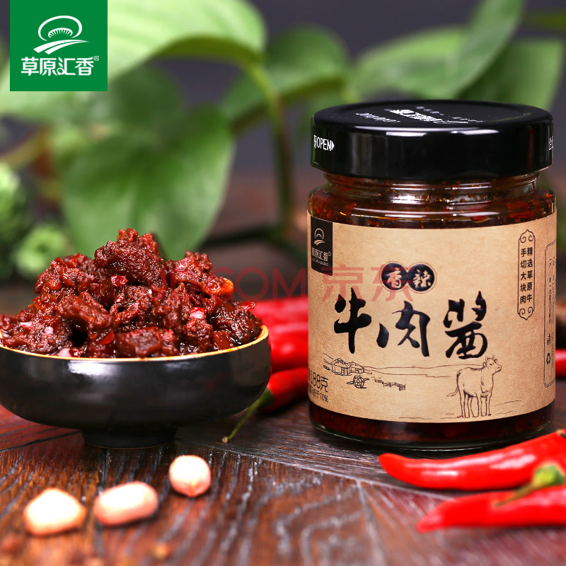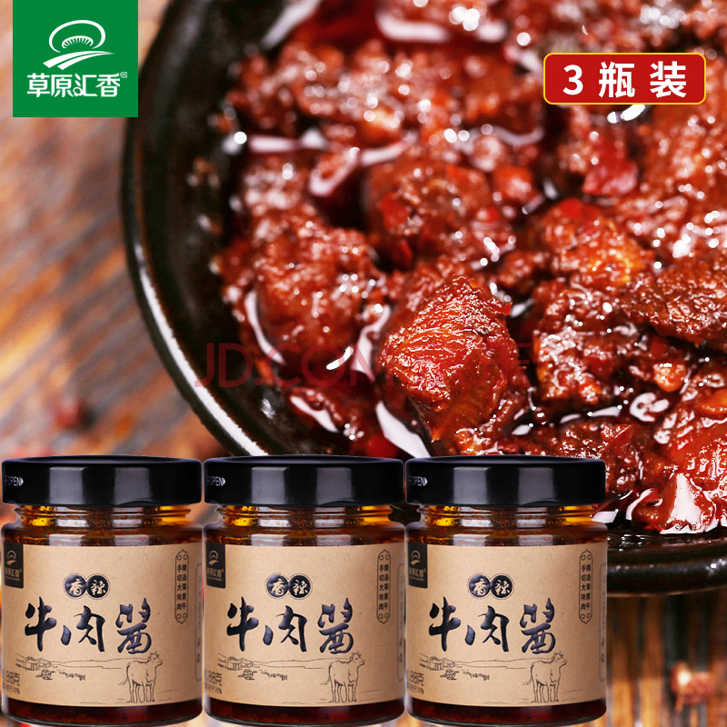 商品相册:草原汇香 牛肉酱下饭酱 188克*3瓶香辣正宗牛肉酱 拌面辣酱下饭碎酱拌饭酱第