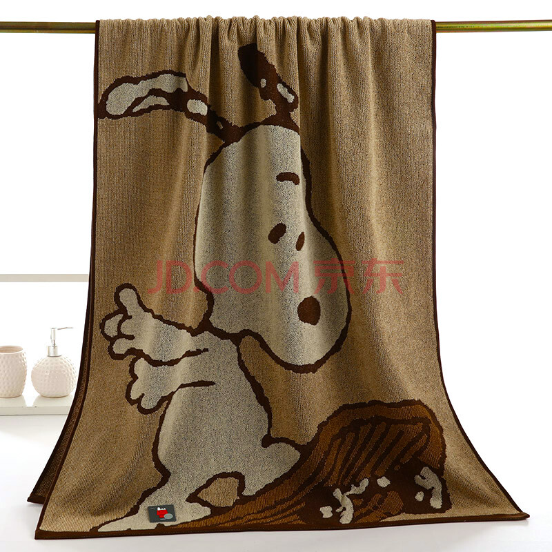 商品相册:金号毛巾纯棉史努比卡通加大洗澡巾 柔软吸水A类大浴巾 棕色 180*78cm第