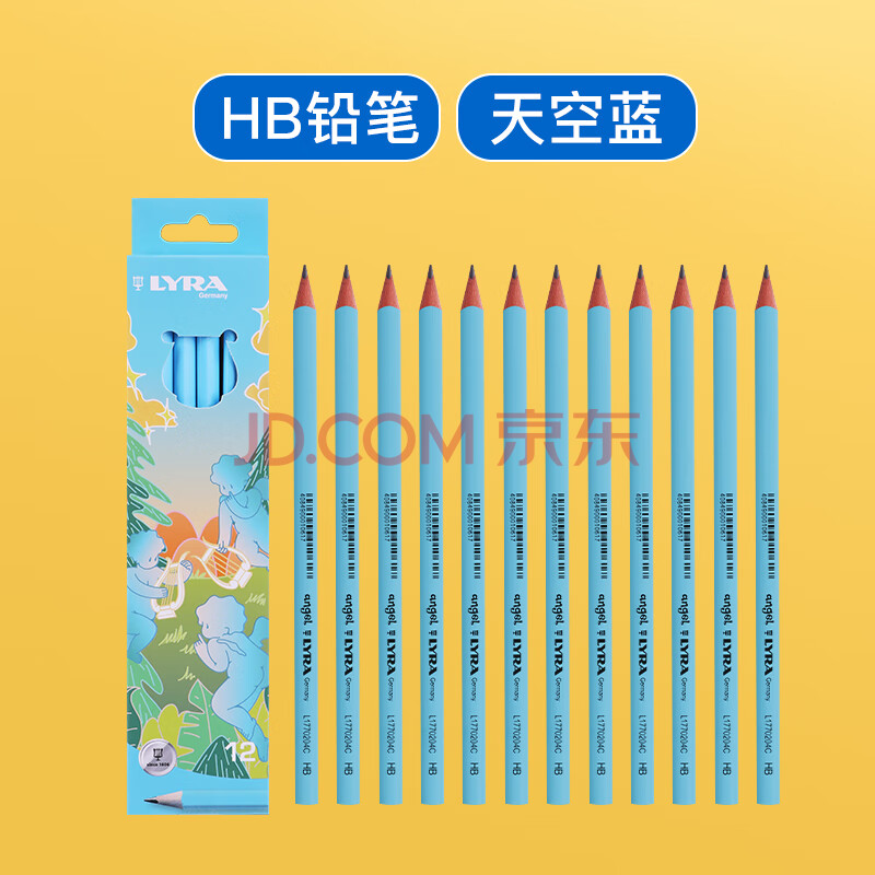 商品相册:LYRA德国艺雅小天使铅笔 小学生考试涂卡练字铅笔 儿童彩色三角杆铅笔HB-12支/盒 天空蓝L1770202C第