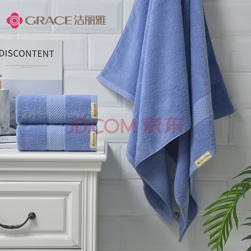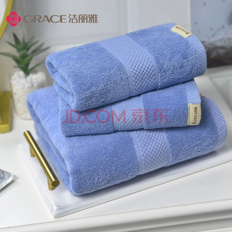 商品相册:洁丽雅(Grace)浴巾家用A类纯棉1浴巾+2毛巾组合装 成人男女柔软吸水全棉 经典蓝第
