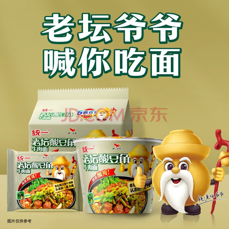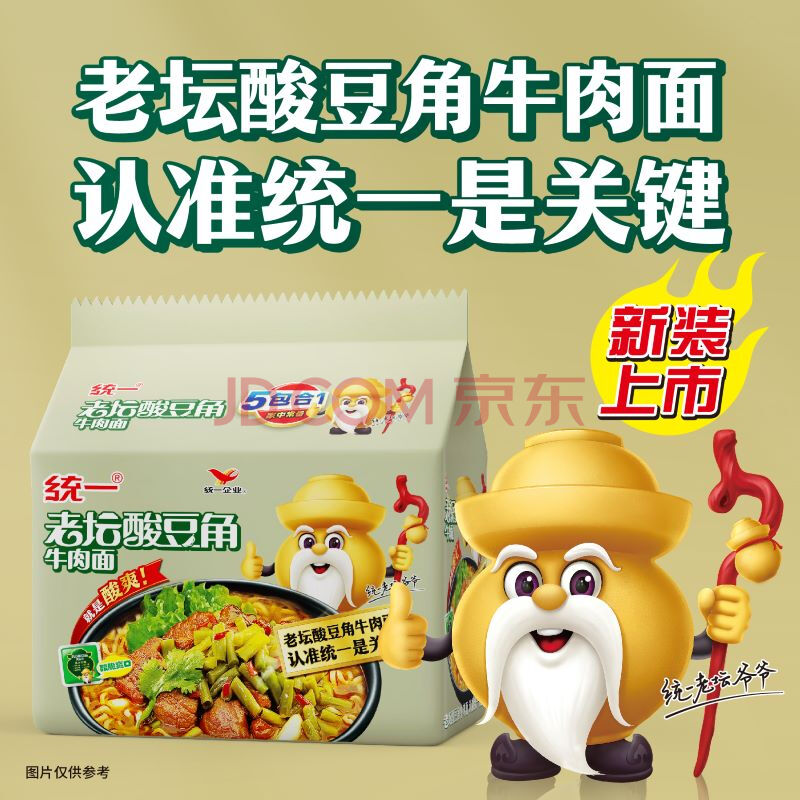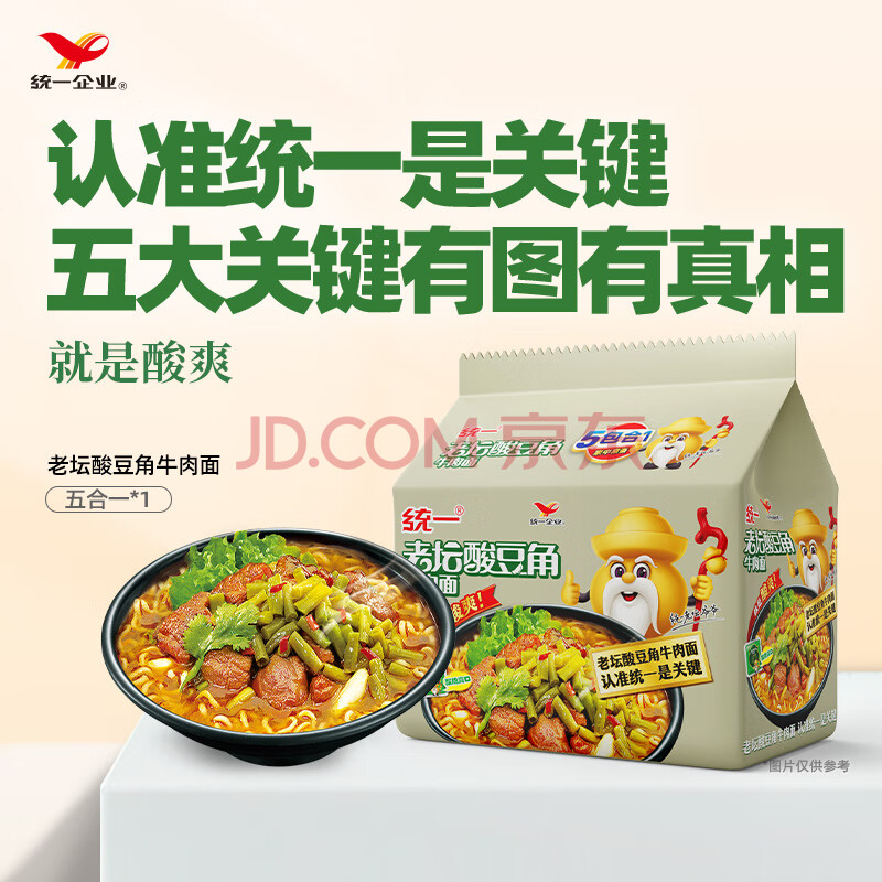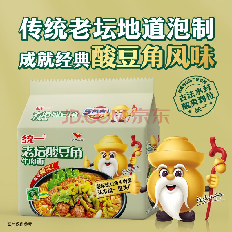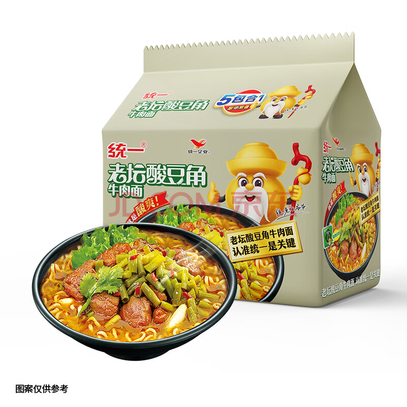 商品相册:统一老坛酸豆角牛肉面 袋装 110g*5袋五连包传统老坛地道泡制速食泡面第