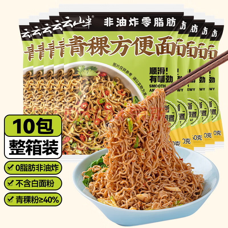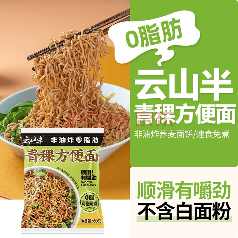 商品相册:云山半0脂肪青稞方便面非油炸荞麦泡面饼慢碳水速食免煮粗粮面600g第