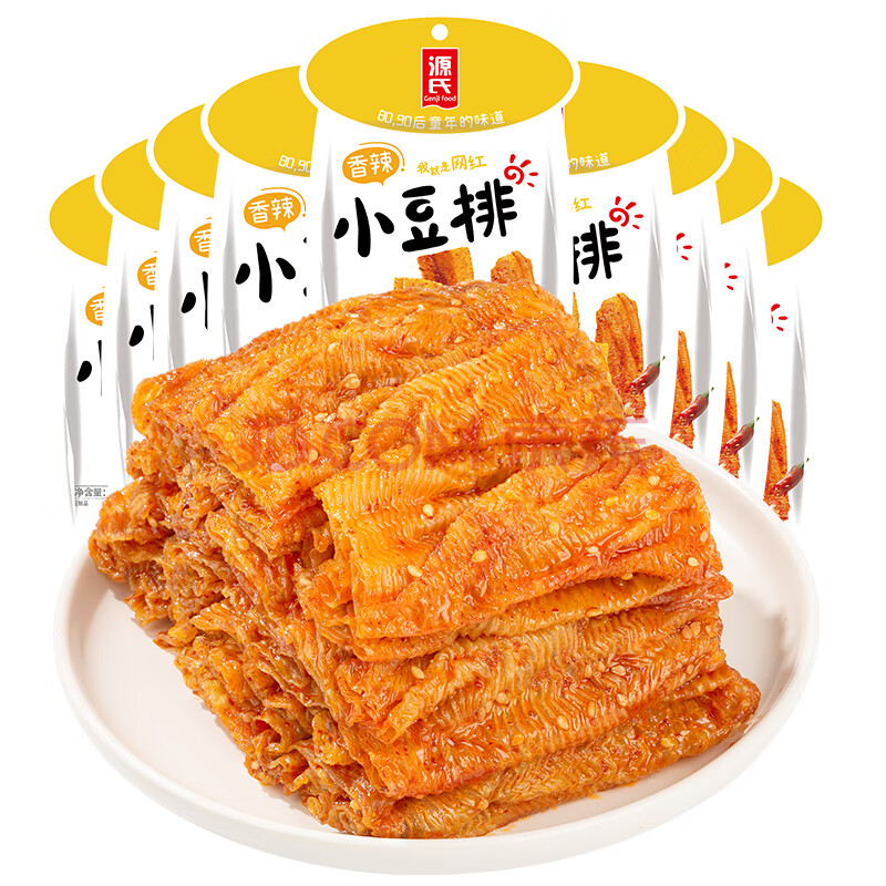 商品相册:源氏 网红休闲解馋零食小吃 手撕豆干辣条大礼包 香辣小豆排300g/袋 第