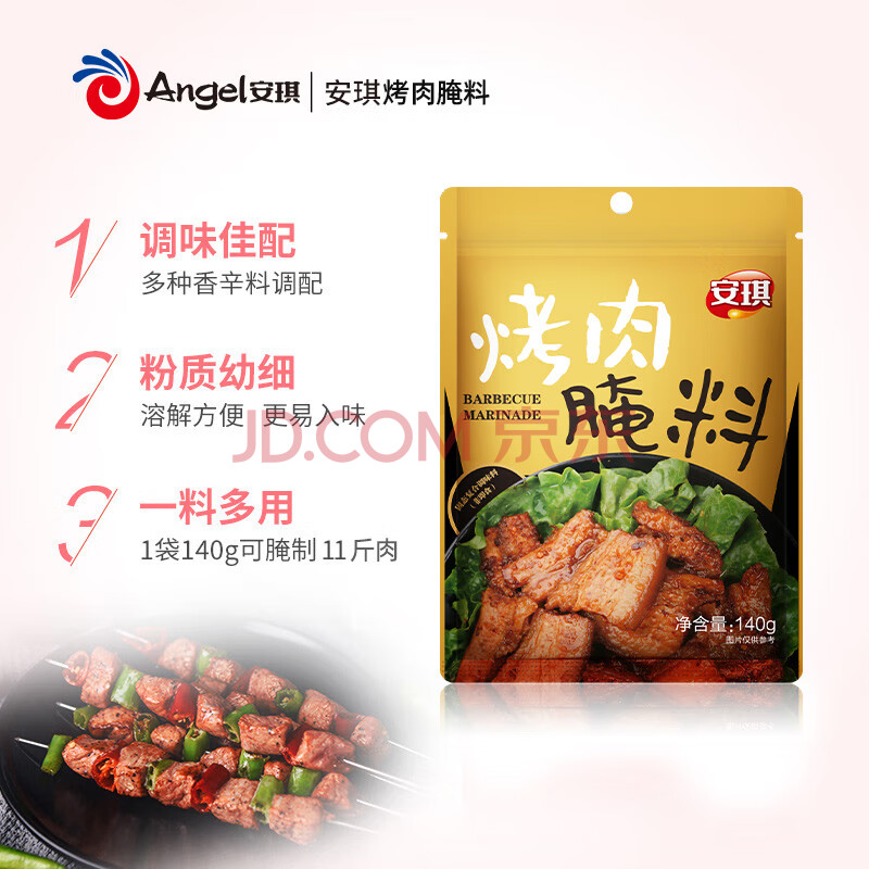 商品相册:安琪烤肉腌料 家用腌肉料烧烤调料鸡翅五花肉牛羊肉串腌制调味品140g第