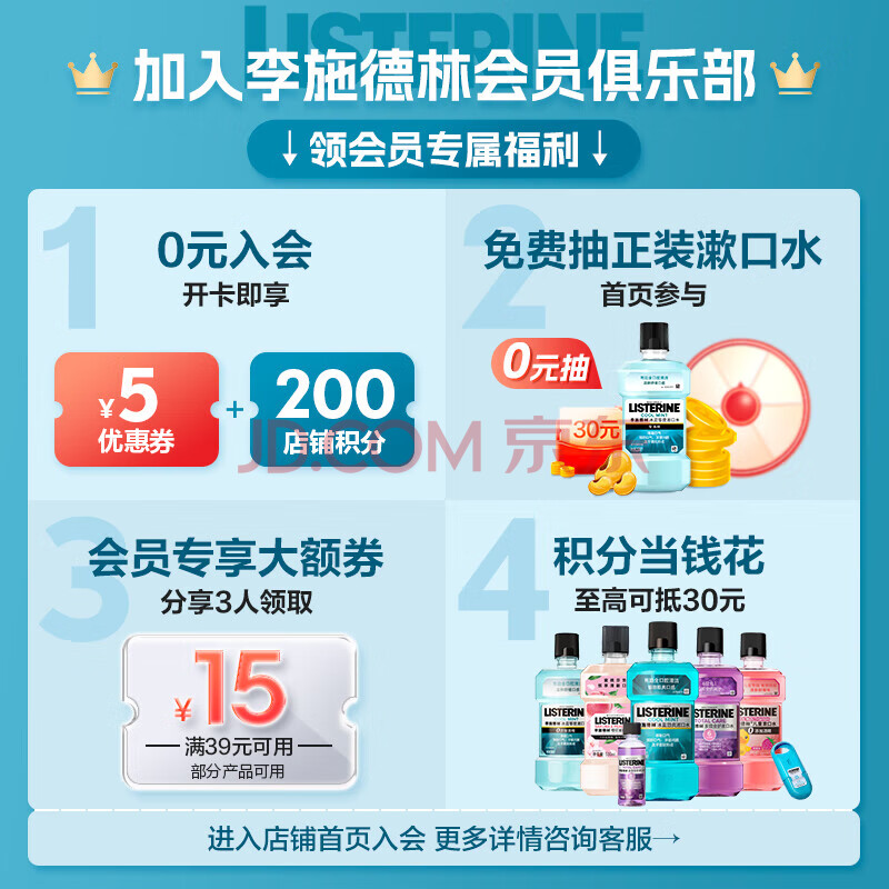 商品相册:李施德林 (Listerine) 漱口水 椰香青柠口味温和清新口气女 500ml*3第