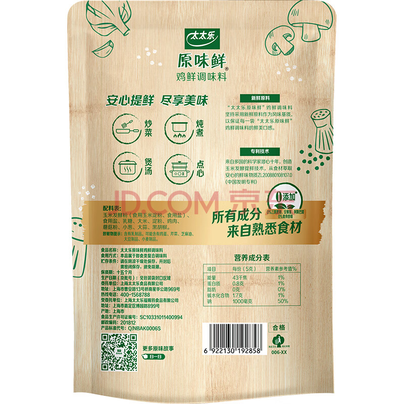 商品相册:太太乐鸡鲜调味料 原味鲜系列 鸡鲜调味料209g 鸡精 0添加配料简洁第