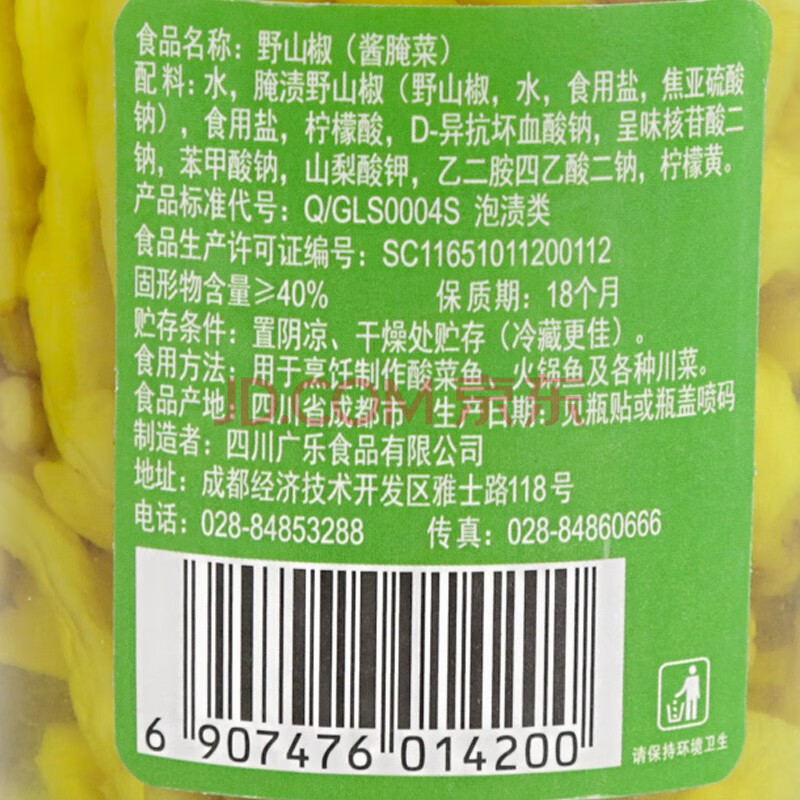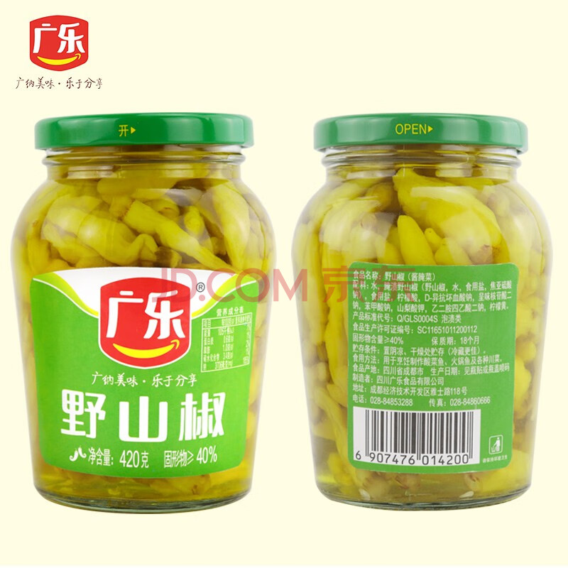 商品相册:广乐野山椒 小米辣辣椒泡椒凤爪原料老坛泡菜川菜调料瓶装420g第