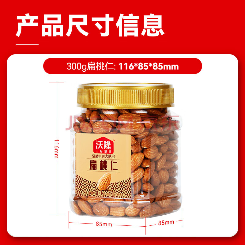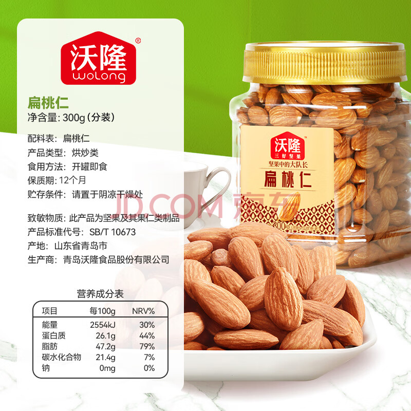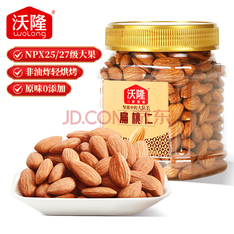 商品相册:沃隆原味扁桃仁300g罐装巴旦木仁办公室解馋烘焙零食第