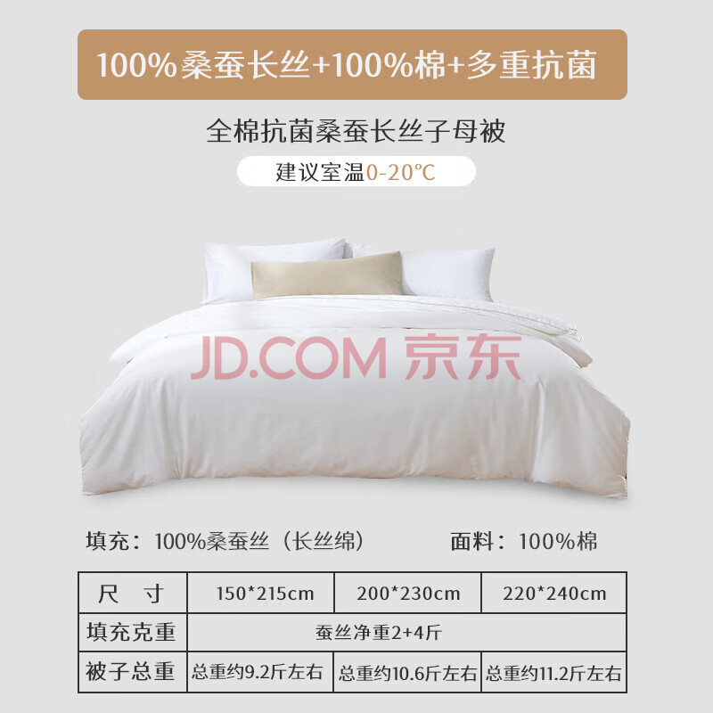商品相册:太湖雪 100%桑蚕丝子母被冬被2+4斤 全棉抗菌面料150*215cm白第