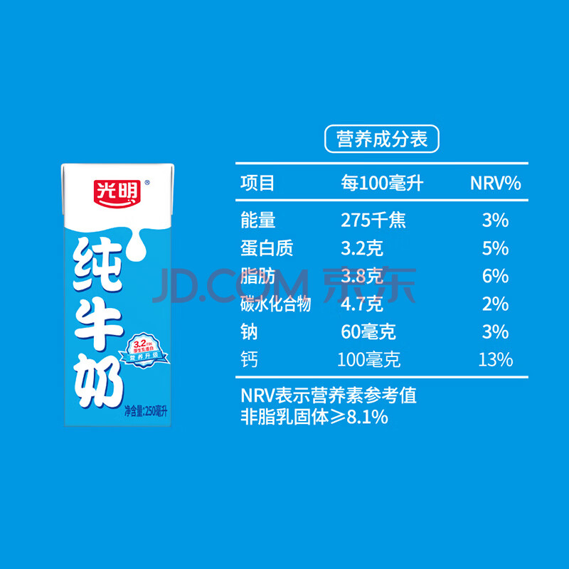 商品相册:光明纯牛奶250mL*24盒 3.2g原生乳蛋白 营养早餐伴侣送礼家庭量贩装第