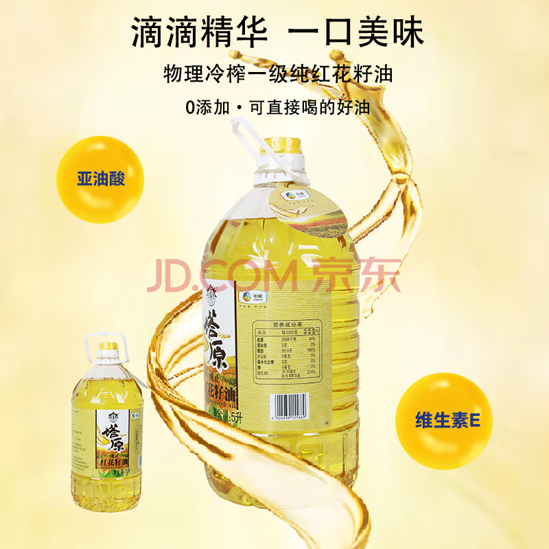 商品相册:塔原 食用油 纯正新疆塔原红花籽油5L 物理压榨 中粮出品第
